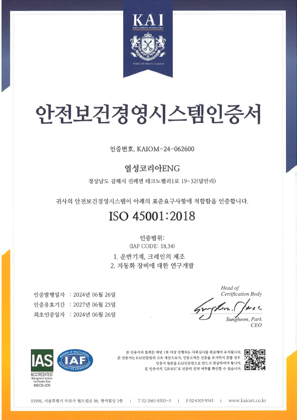 안전보건경영시스템인증서(한)