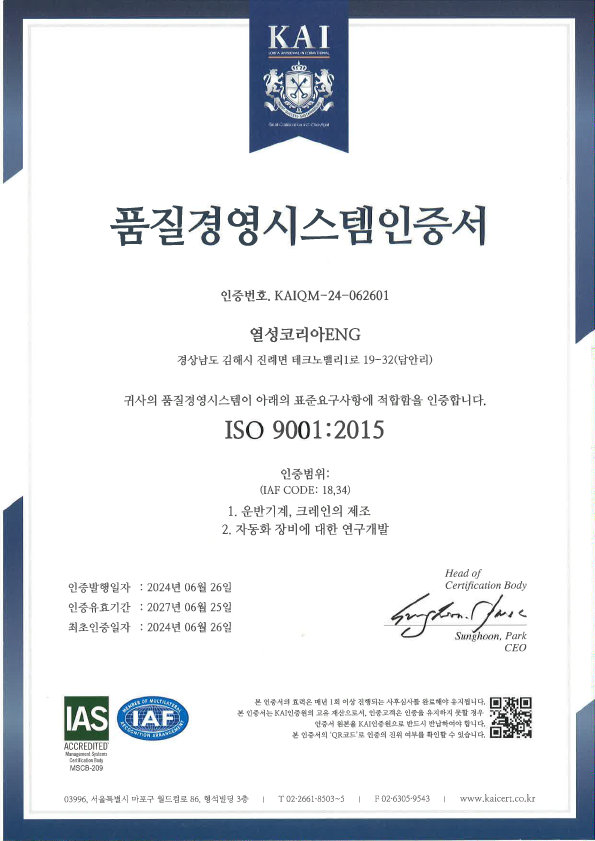 품질경영시스템인증서(한)